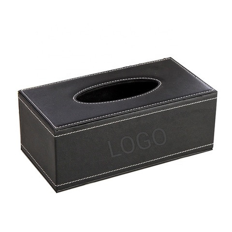 Kotak tisu wajah kustom dengan Logo, kotak tisu PU, penutup kotak tisu hitam kulit Hotel mewah dengan cetakan Logo Emboss ukiran