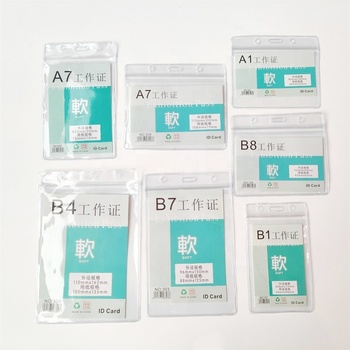 Pemegang Lencana Vertikal dengan Ritsleting Atas Pameran Dompet Kartu ID Tahan Air Plastik Pemegang Lencana PVC Horizontal dengan Tali