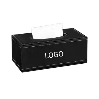 Kotak tisu kulit PU Hotel mewah hitam dengan cetakan Logo Emboss Graved kotak tisu wajah khusus dengan Logo kotak tisu PU